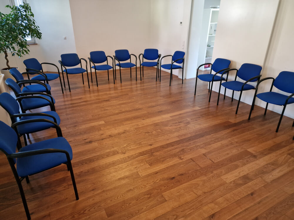 Im neu errichteten Einfamilienhaus mit großzügigem Workspace mit 2 Praxisräumen und Seminarraum wird besonderer Wert auf lernförderliches Ambiente und Wohlbefinden gelegt. Es gibt ausreichend Parkplätze vor dem Haus und auch am Ende der Straße (Wendeplatz).